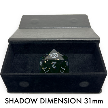 A single 31mm d20 in the color or stone of your choice nestled in an elegant case.